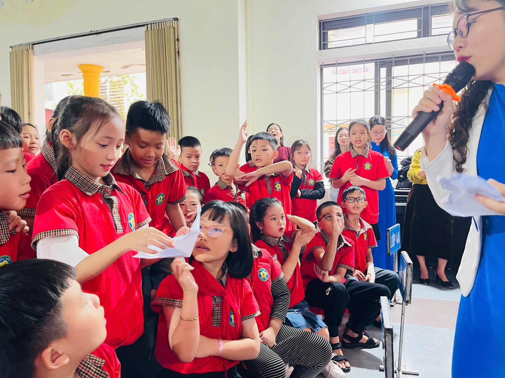 Các bạn học sinh không chỉ rèn luyện khả năng nghe – nói tiếng Anh mà còn được thể hiện sự tự tin, sáng tạo và tinh thần đồng đội đáng quý!
